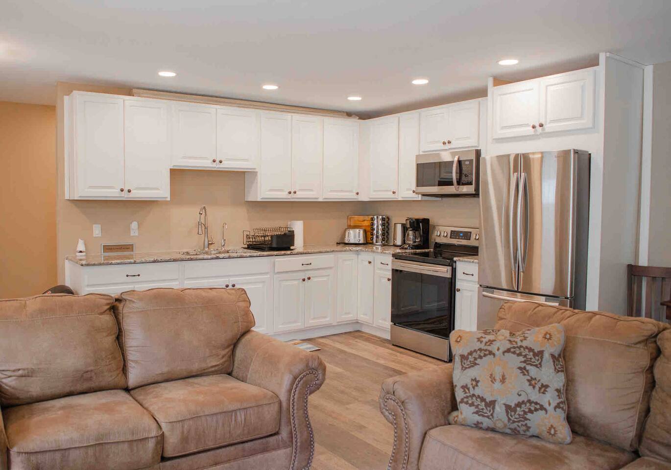- 2 full size beds - Full kitchen including stove, oven, fridge, microwave, coffee machine, toaster, and utensils - Drinkable filtered water next to faucet on kitchen sink - Dining table and chairs/bench for 4 guests - Separate heat for living room and bathroom - 50" Smart TV - Free high-speed Wi-Fi **No Dishwasher in the unit (Sorry =( )**